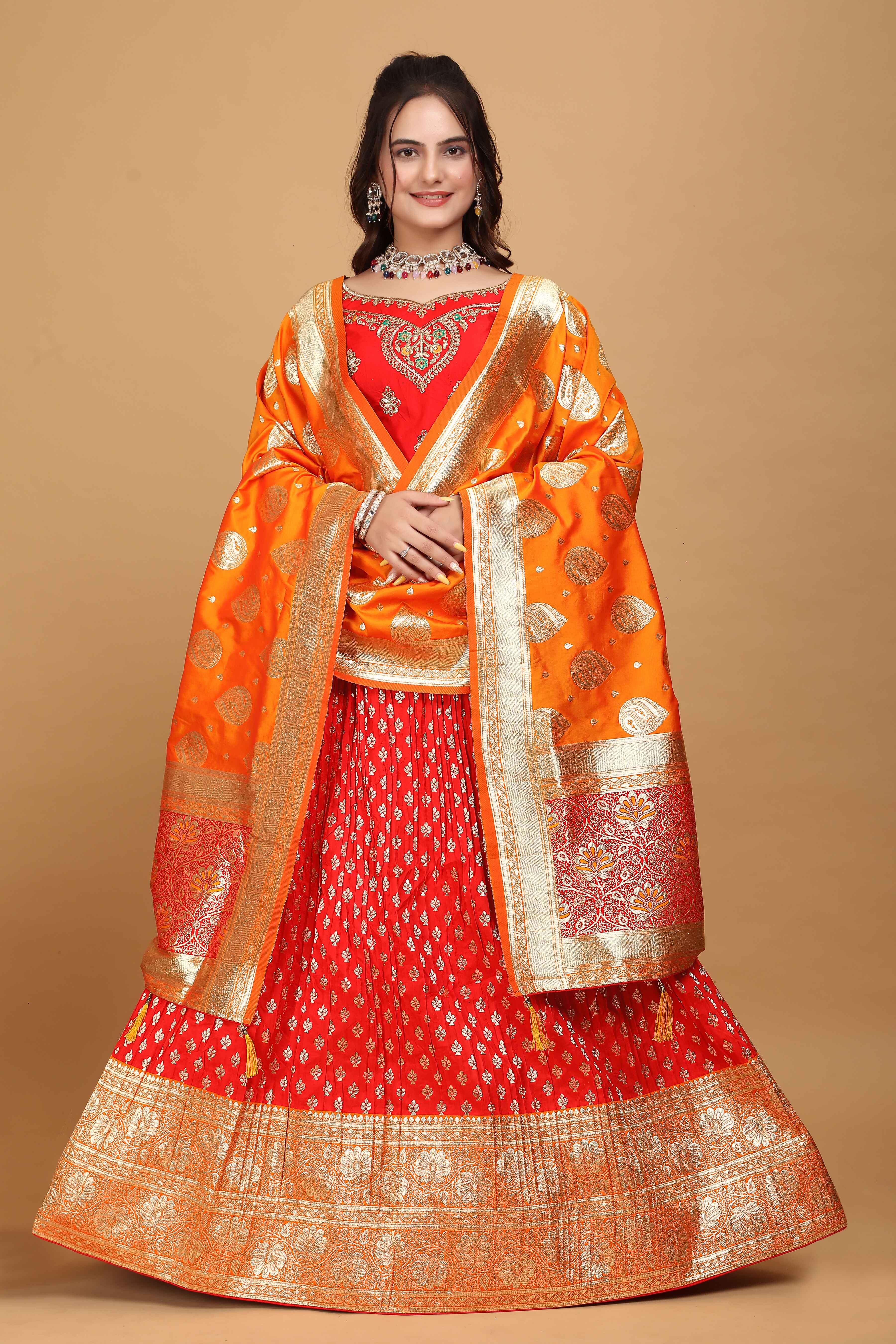 Sajli Red Banarasi Jecquard Lehenga S32