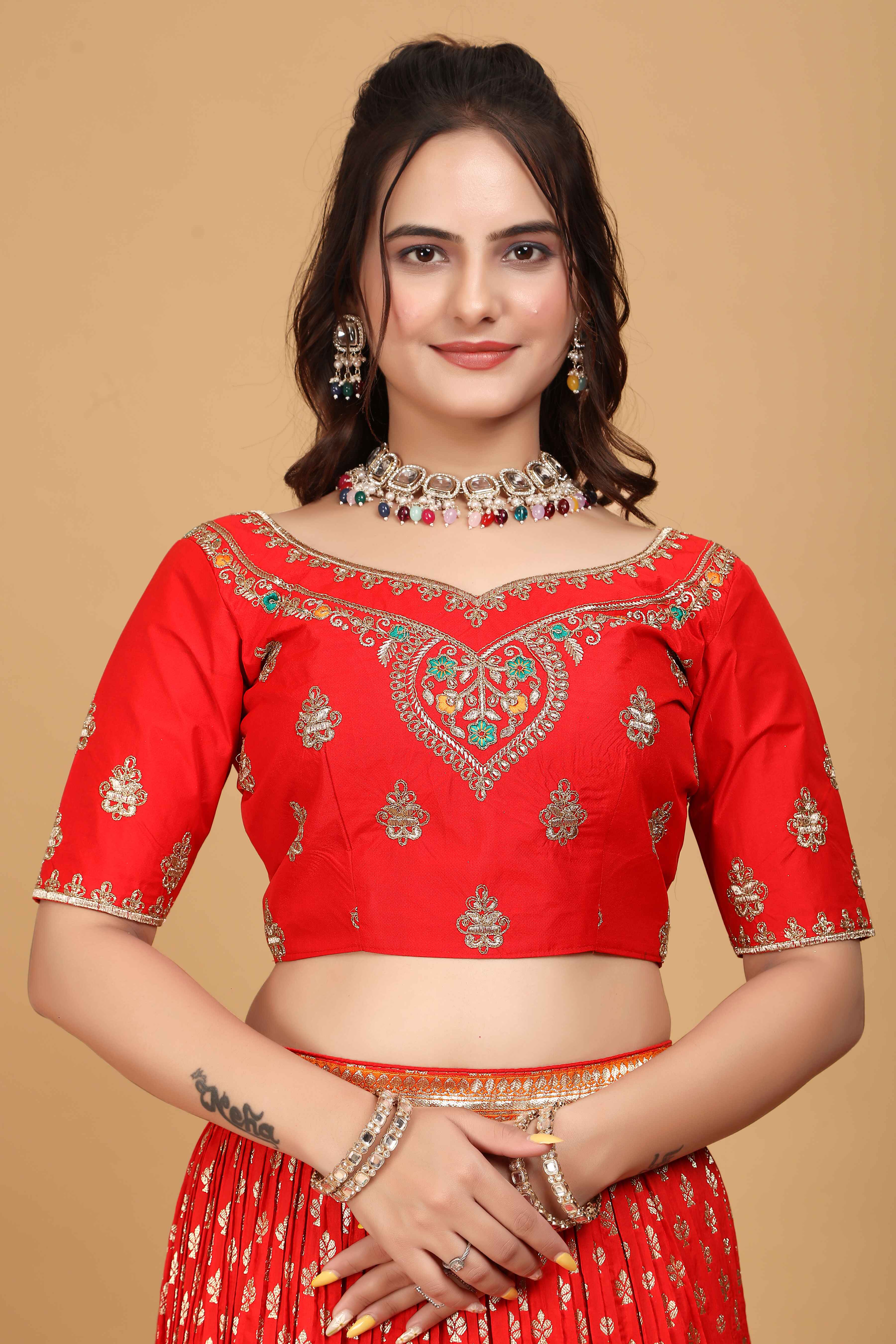 - Choli: Heavy Silk Fabric with embroidery Work (Unstitched 1.00 MTR.)