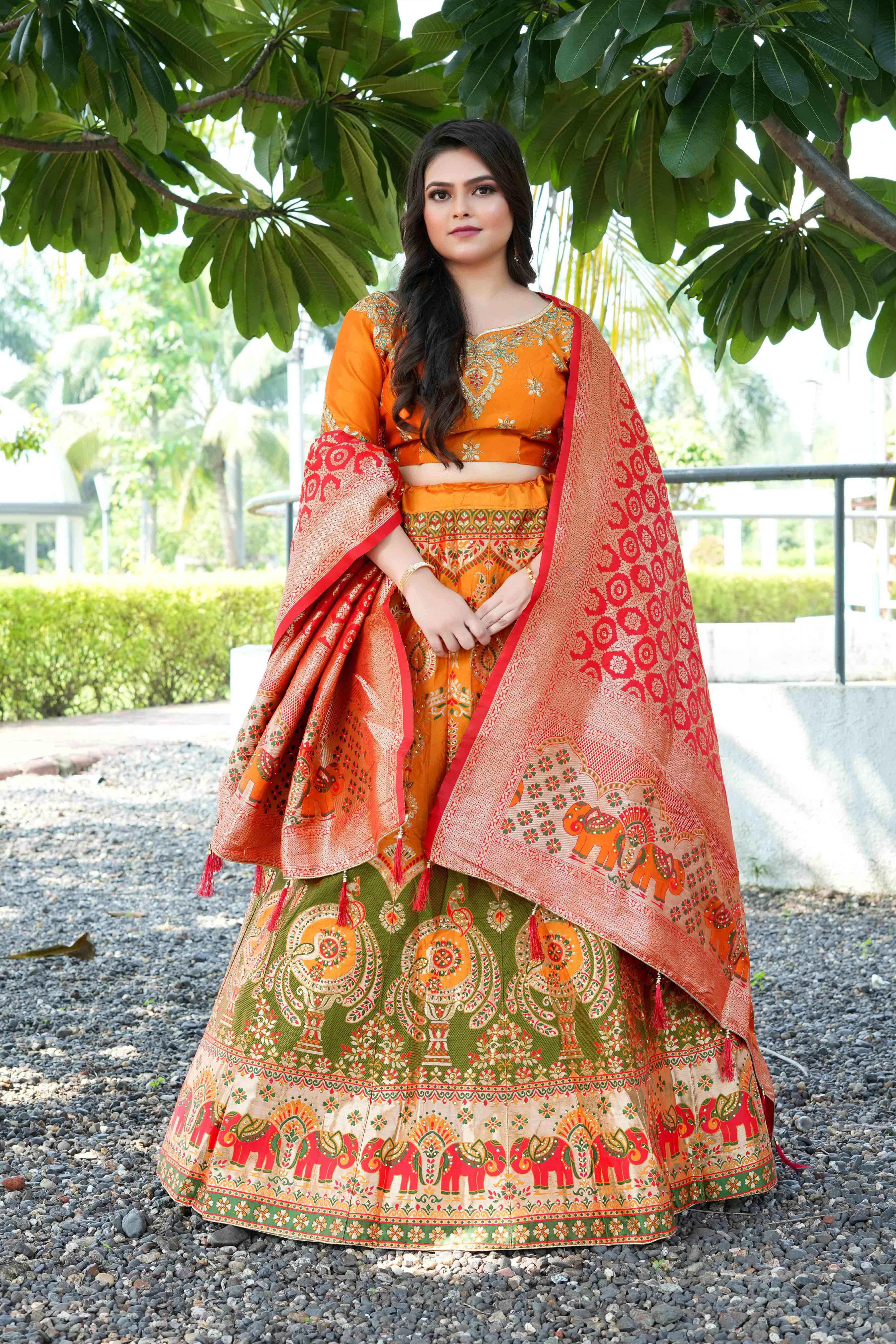 Sajli Yellow Banarasi Zari Weaving Lehenga Choli S43